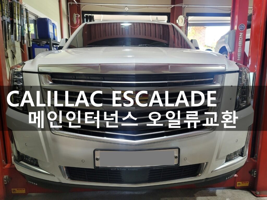 전반적인 오일류 교환과 에어컨 냉매 서비스 예약으로 2019년식 캐딜락 에스컬레이드(주행거리 60,000km) 차량이 입고되었네요.