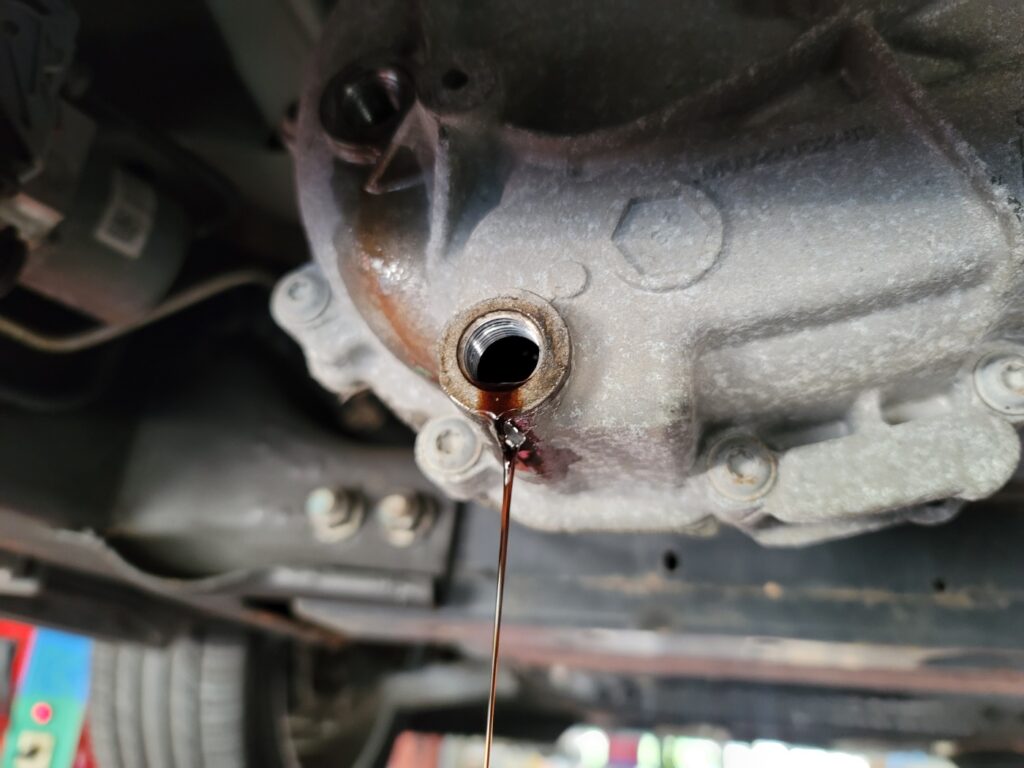 전륜·후륜 디퍼렌셜 오일도 RAVENOL 제품으로 각각 교환합니다. 하이포이드 기어가 적용되는 윤활특성, 부하가 큰 대형 SUV 특성상 열화·점도저하 관리가 중요합니다.