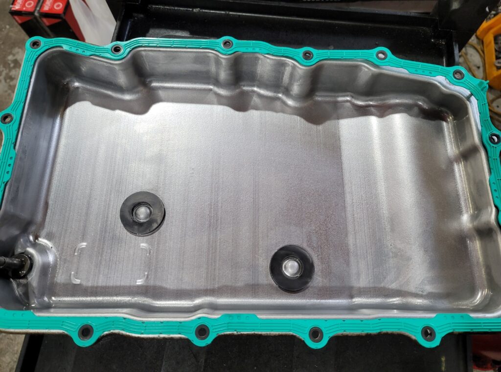 자동변속기는 오일팬 분리, 내부 자력체(슬러지 캡) 클리닝, 필터와 가스켓을 신품으로 교환한 뒤 FUCHS 사양의 ATF로 신유 리필됩니다.