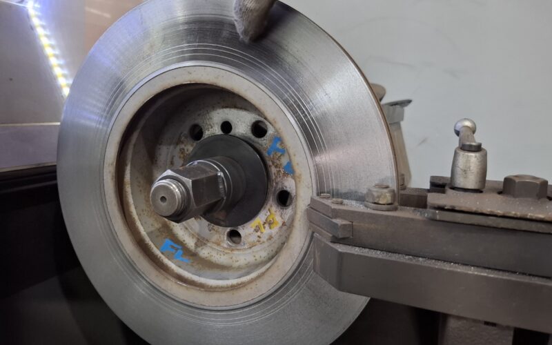 리프트 업 후 로터 두께 편차와 허브 런아웃을 점검하고 패드 접촉면을 확인하니, 패드 표면 금속 입자가 다량 노출되어 로터와의 미세 스틱–슬립을 유발하는 조건이군요.