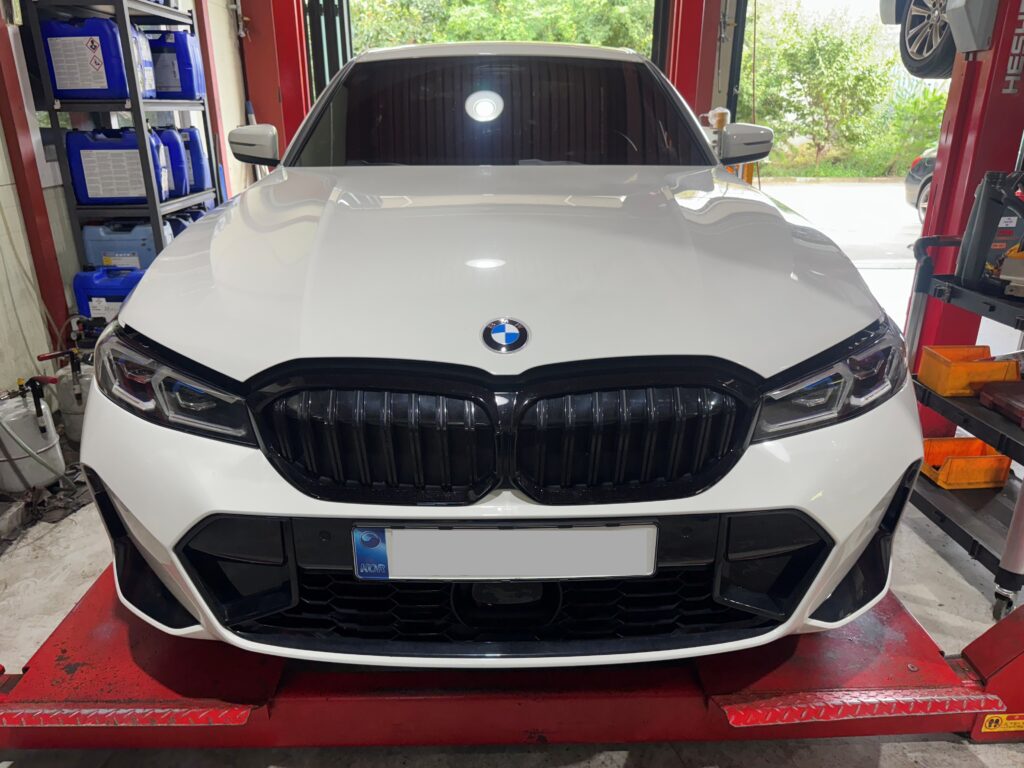 2025년식 BMW 320i(주행 5,100km) 차량이 신차 초기관리 목적의 예약으로 입고 되었습니다.